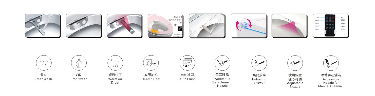Enter公司堅持不懈的自我完善,倡導產(chǎn)品以人為本、科技為先,服務優(yōu)質(zhì)高效。以生產(chǎn)研發(fā)高質(zhì)量的產(chǎn)品為目標,繼續(xù)推動創(chuàng)新與發(fā)展,使產(chǎn)品的系列化、多樣化與結(jié)構(gòu)的多元化,滿足不同客戶的差異化需求。 公司研制的智能馬桶豪潔、舒潔、美潔三大系列產(chǎn)品款式引領(lǐng)衛(wèi)浴時尚潮流,造型多變,設計精美小巧,生動的展現(xiàn)現(xiàn)代藝術(shù)精髓,彰顯世上而富有情趣的生活空間是賓館、酒店、寫字樓及家庭裝潢的理想選擇。
